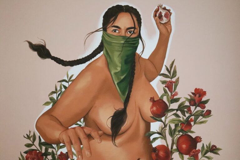Priscila Barbosa, artista representada pela Aborda, transforma a romã em metáfora de autonomia feminina no Ali Juus Bar