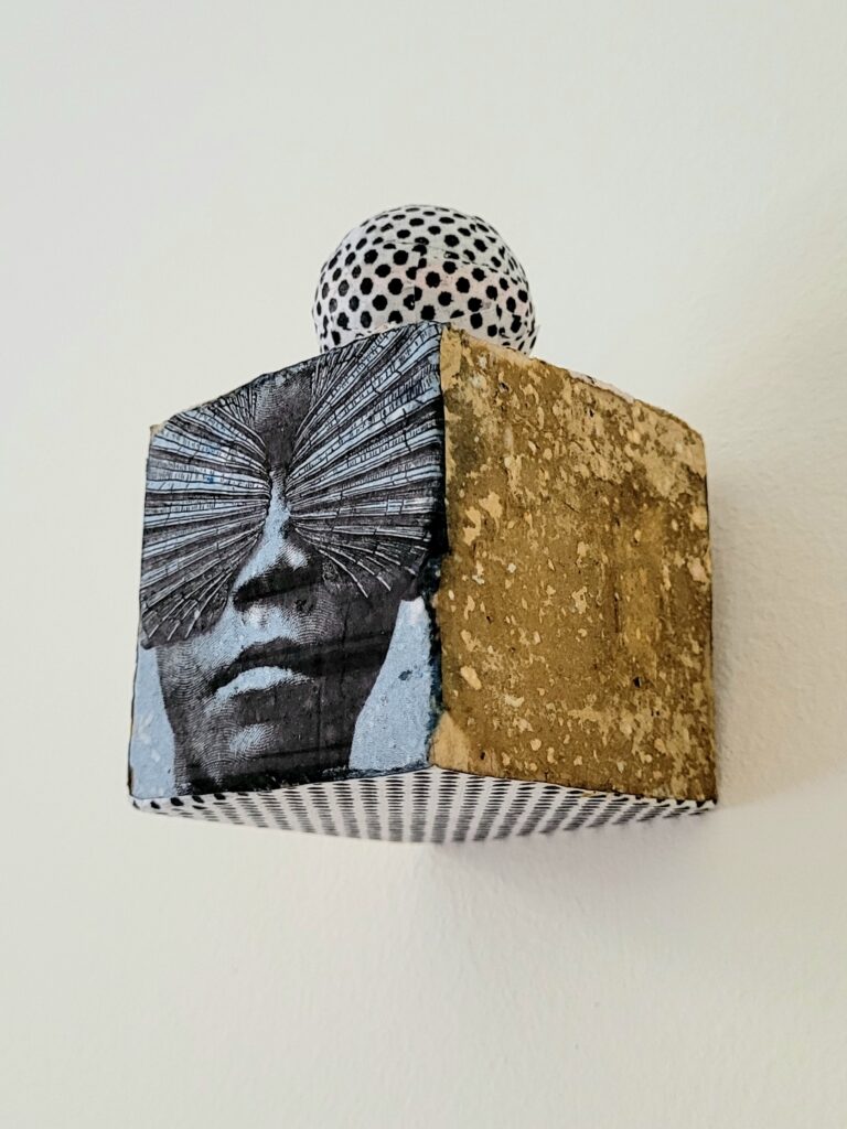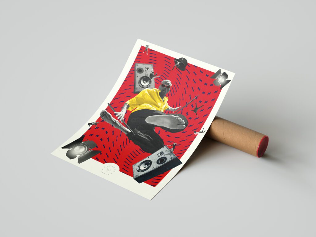 Alberto Pereira, artista representado pela Aborda, não só compreende essa dinâmica, como a leva a novos territórios. Seu trabalho articula a linguagem do lambe-lambe tanto em projetos institucionais e comerciais quanto em uma investigação autoral que dialoga com os fluxos de imagem que nos atravessam diariamente. Combinando colagem digital e apropriação de símbolos, ele desloca o lambe do contexto urbano para suportes diversos, como telas, instalações e materiais gráficos. Se o lambe-lambe historicamente se impõe pela urgência e pela ocupação do espaço, Alberto potencializa essa característica, explorando seus limites formais e tensionando a fronteira entre o transitório e o permanente.