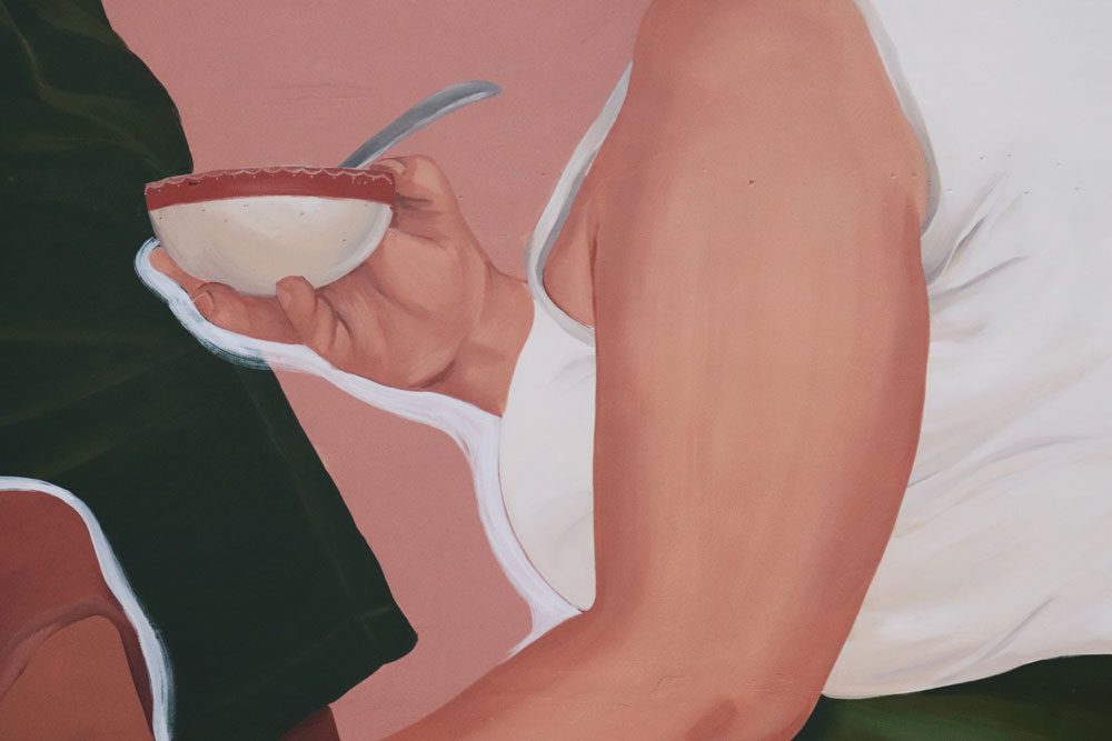 Este ano, 2022, a Semana de Arte Moderna de 1922 completou cem anos. Em homenagem à data, o Sesc Campinas promoveu uma ocupação coletiva de artistas visuais nos muros externos da instituição. Pri Barbosa foi uma das artistas convidadas e realizou a releitura da obra “Os operários”, de Tarsila do Amaral.
