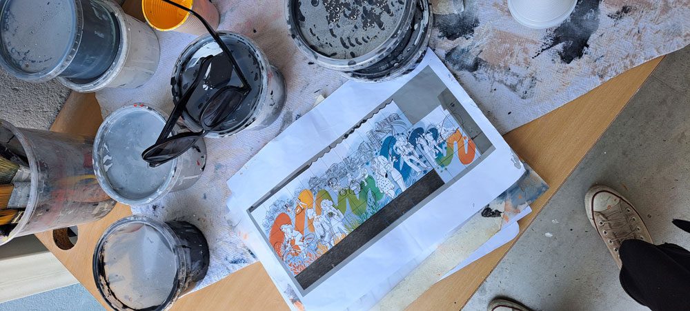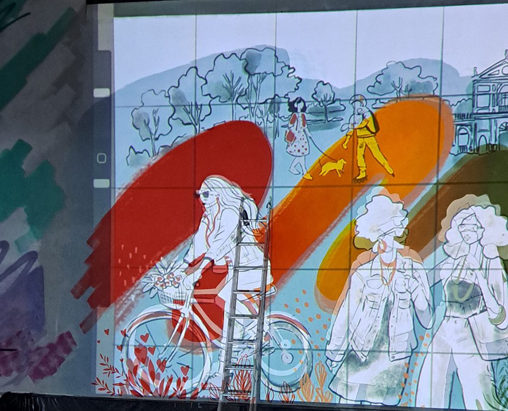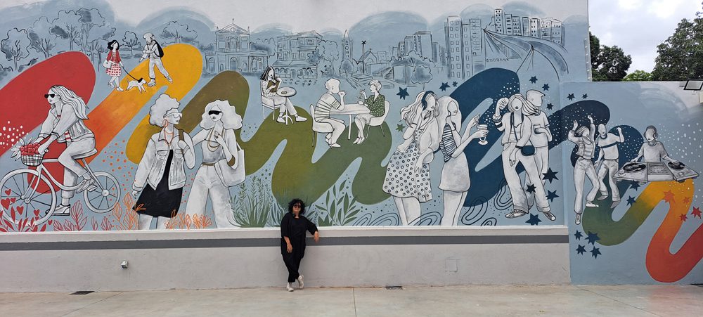 – Retratei a vida de São Paulo, com várias cenas culturais acontecendo simultaneamente. Coloquei diferentes espaços como parques, centro da cidade, cafés, livrarias e barzinhos. Foram 5 dias de bastante trabalho, nos quais tive todo o suporte operacional da Aborda. No fim curti bastante o processo e o resultado!