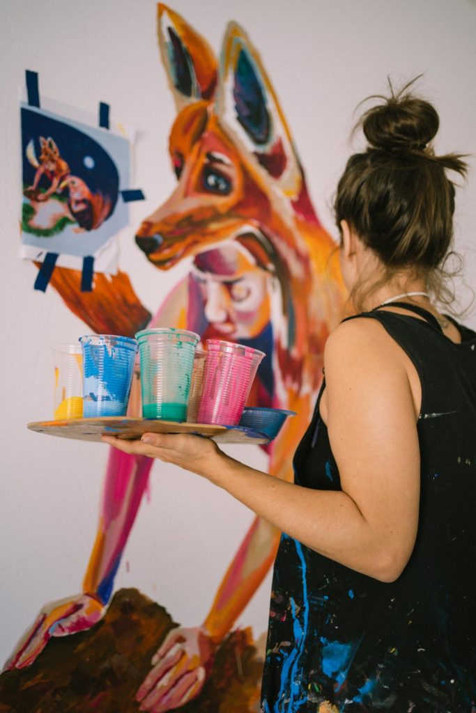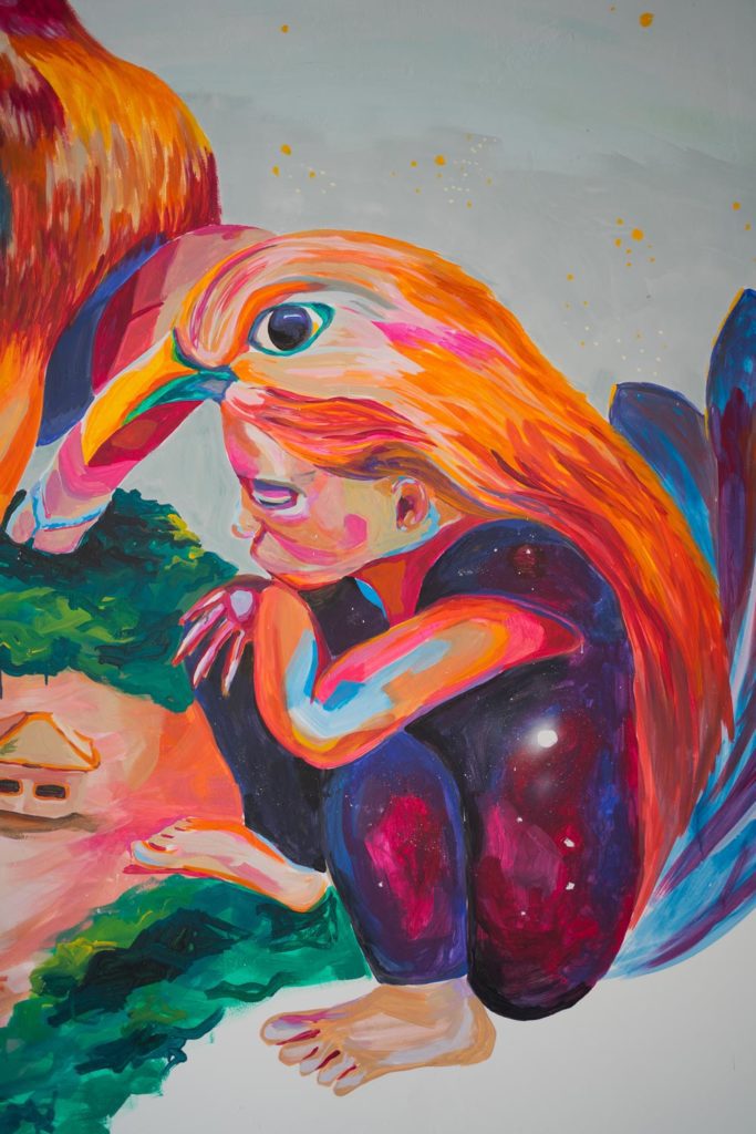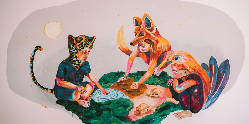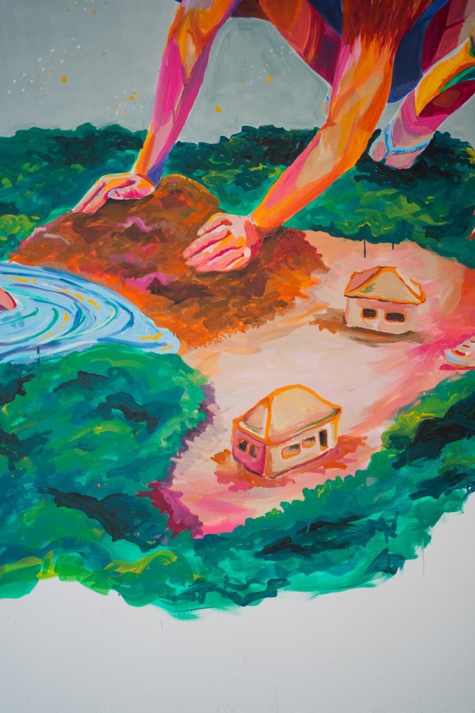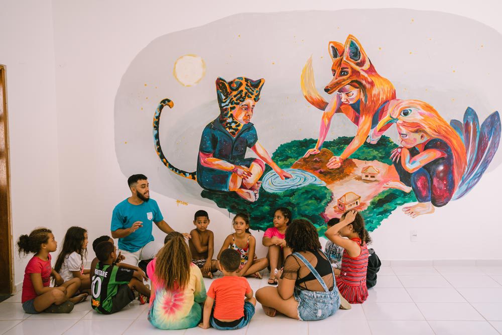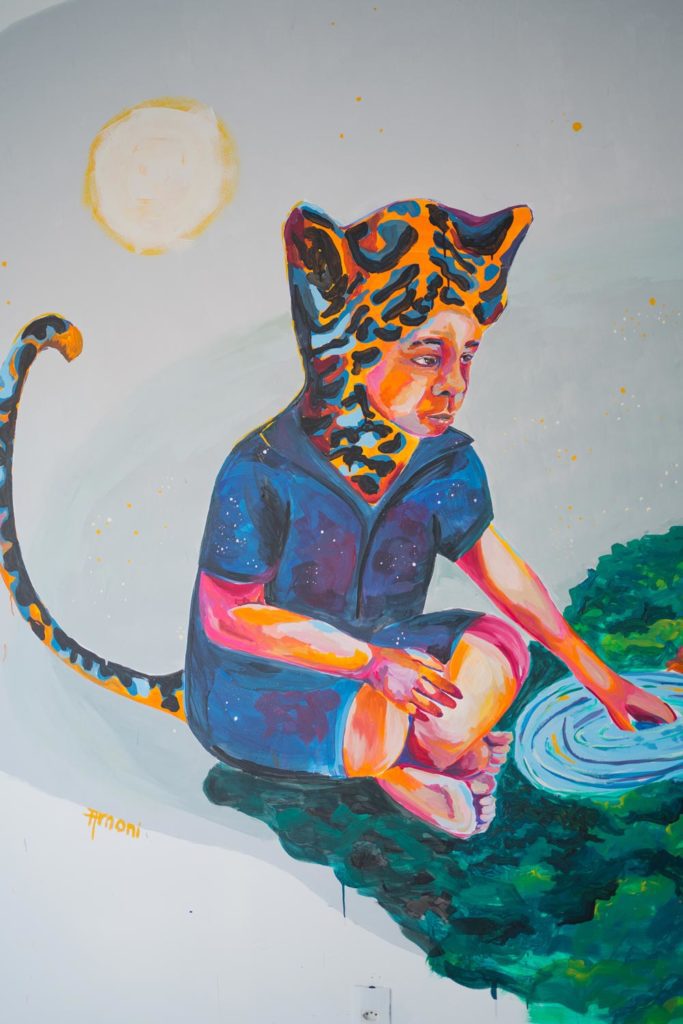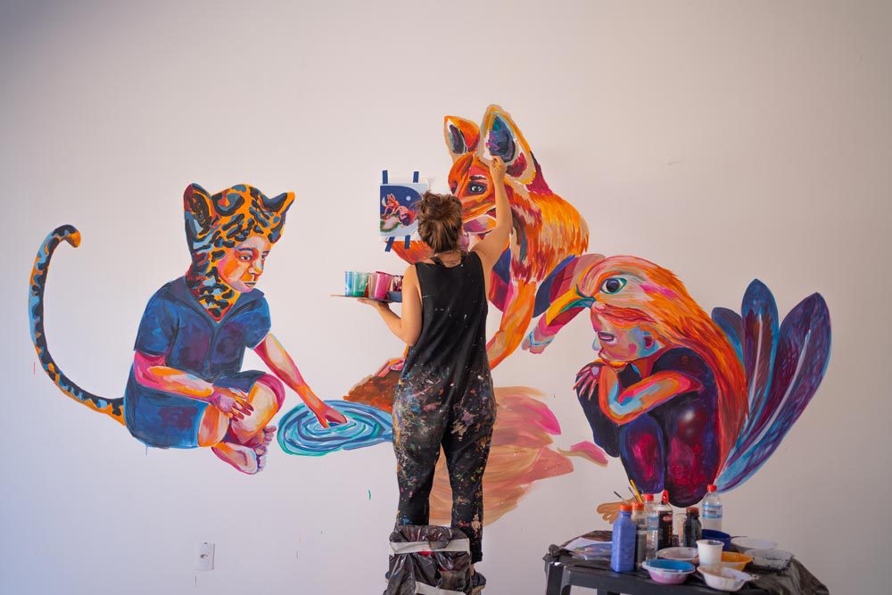 Em abril de 2022, a Casa de Gentil convidou nossa artista Priscila Amoni a pintar um mural no novo espaço da ONG. O painel sem título faz parte da nova série da artista: “Encantadas”.