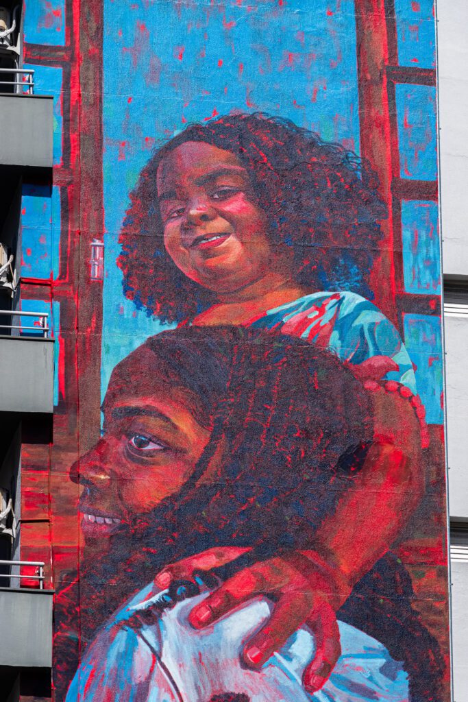 Na pintura, o artista busca instigar uma reflexão acerca de um futuro menos marcado pelo racismo, promovendo uma visibilidade ampla e justa para a população negra.