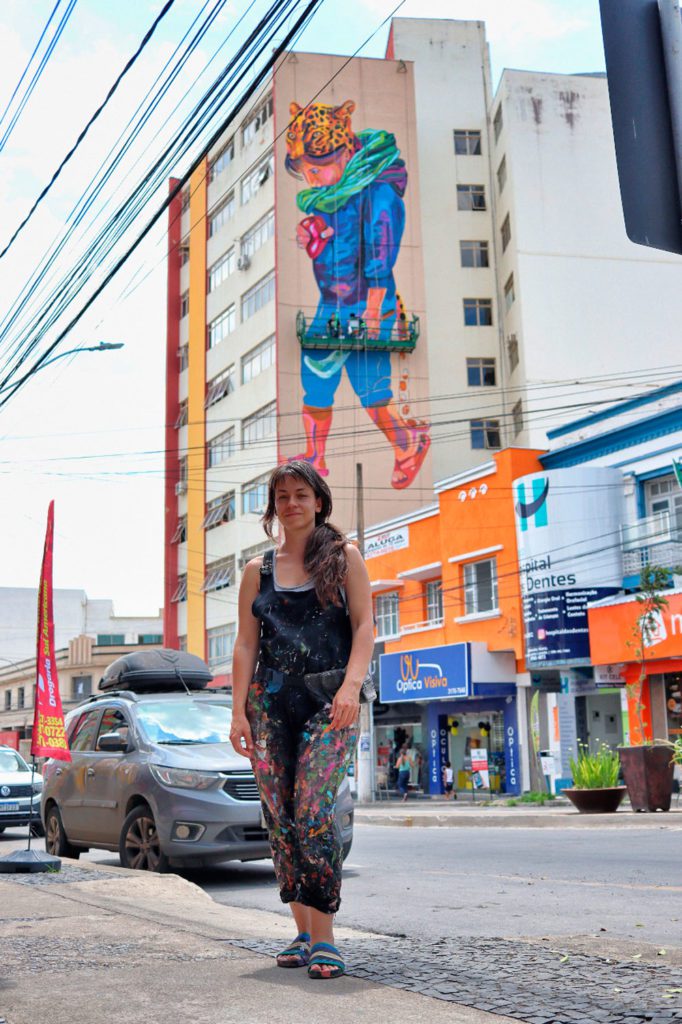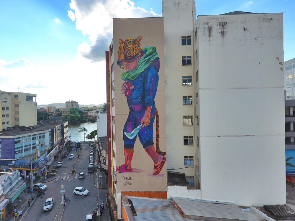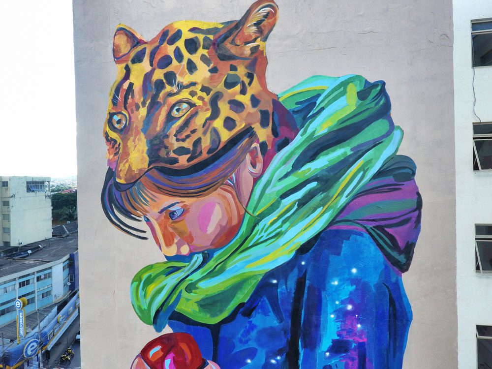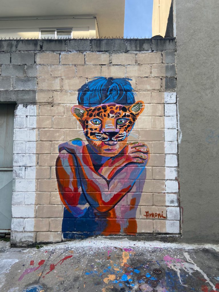 Priscila Amoni ressalta que a mistura da figura de crianças com a de animais é  para mostrar o lado espiritual delas,  como se fossem seres de poder. Segundo a muralista, a onça também se conecta com a brasilidade, o Brasil profundo e decolonial.