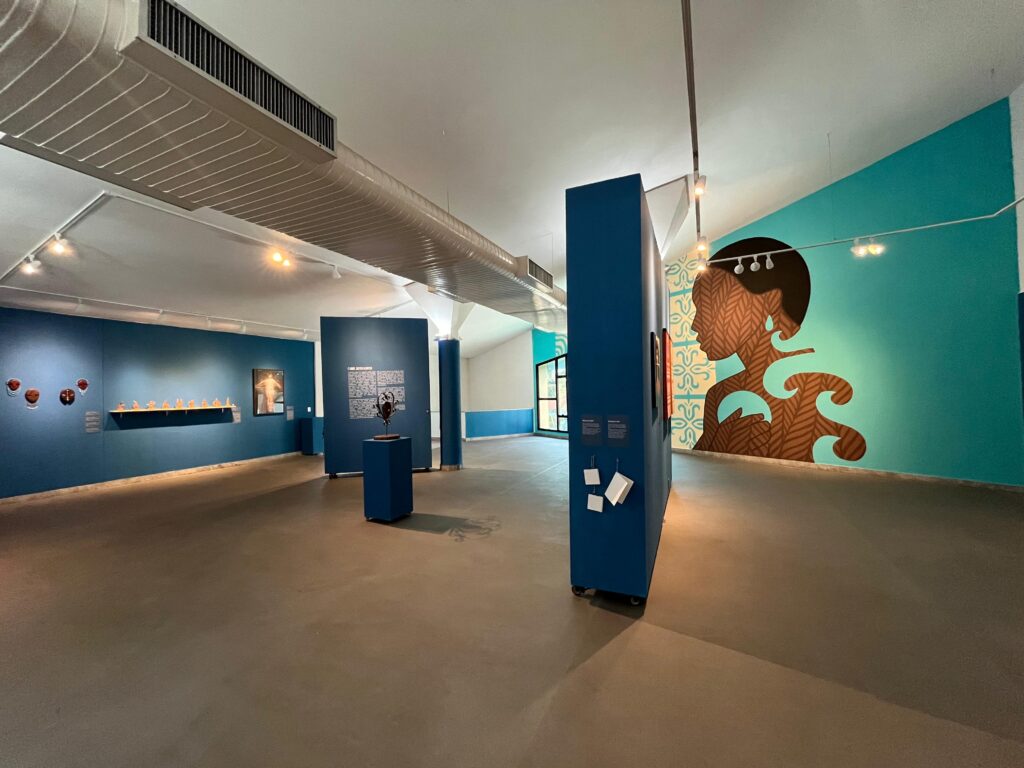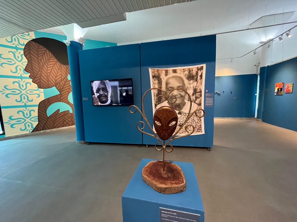 A artista apresenta obras que envolvem a elaboração de máscaras esculpidas em madeira de Ipê. As peças destacam-se pela aplicação meticulosa de miçangas, cobre e búzios, incorporando elementos que remetem à tradição afrodiásporica. As obras expostas, como Cada lágrima que eu chorei I e II (2023), As águas que correram dos meus olhos (2023), Segredos do Mar (2022), e O mar me contou muitos segredos (2023), são marcadas pelo simbolismo da água, uma constante na investigação artística de Bastos.